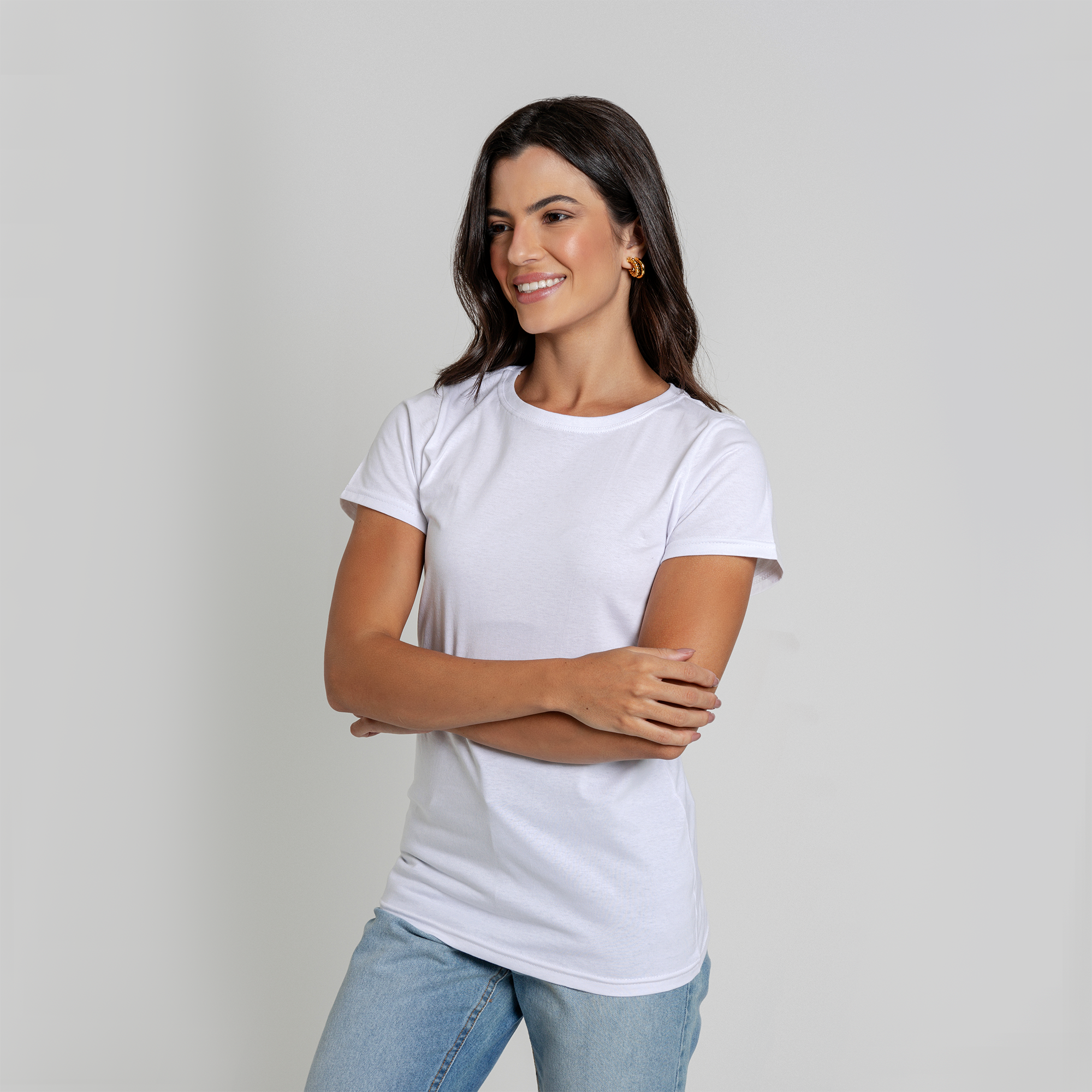 Camiseta Baby Look Algodão Adulto Feminino Branco