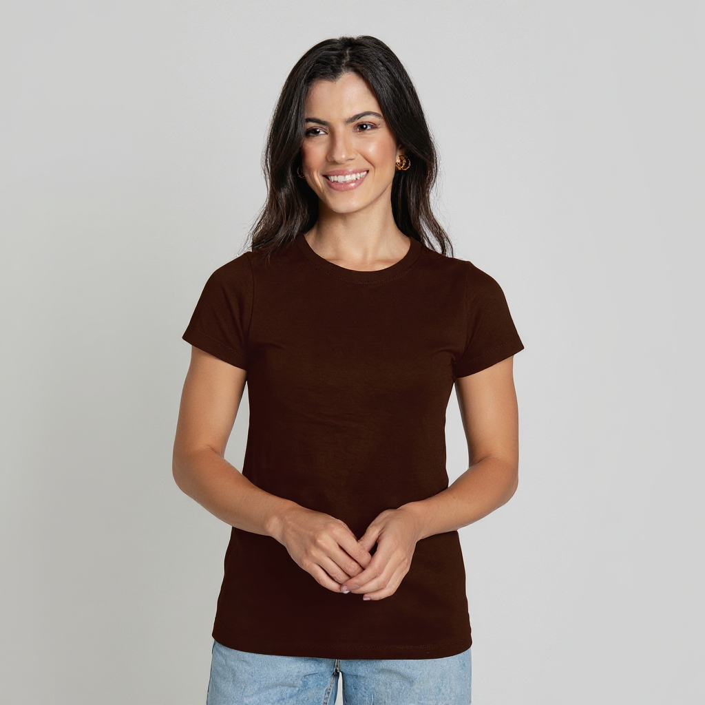Camiseta Baby Look Algodão Adulto Feminino Marrom