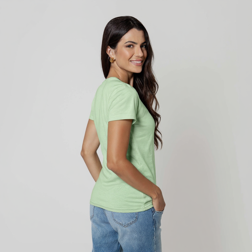Camiseta Baby Look Algodão Adulto Feminino Verde Cidra